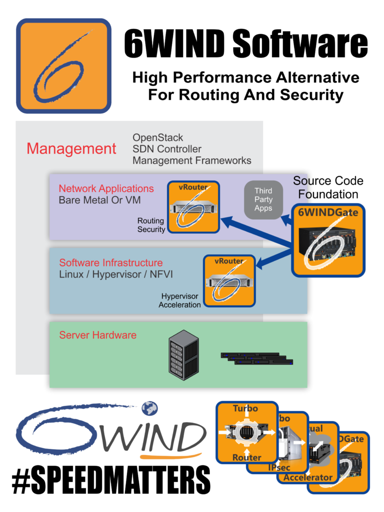 6WIND leads the market in high performance networking software. Our mission is to give Service Providers, Enterprises and OEM customers a software alternative to expensive hardware routers, security gateways, and other proprietary networking equipment.